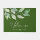 This unique personalised welcome doormat is decorated with watercolor greenery and says Welcome in stylish script typography.