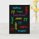 What a wonderful, personalised greeting card for a 17th birthday or any other occasion. On the cover, Name and Age repeats in different fonts and colours on a black background. Easy to personalise - just CHANGE NAME, AGE, and OCCASION in ONE PLACE. Supports name up to 9 characters. A colourful and fun Birthday CARD. Kids, teenagers, and adults will love it! Also easy to modify inside text, if desired. All Rights Reserved © 2014 Marcia Socolik.