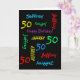 What a wonderful, personalised greeting card for a 50th birthday or any other occasion. On the cover, Name and Age repeats in different fonts and colours on a black background. Easy to personalise - just CHANGE NAME, AGE, and OCCASION in ONE PLACE. Supports name up to 9 characters. A colourful and fun Birthday CARD. Kids, teenagers, and adults will love it! Also easy to modify inside text, if desired. All Rights Reserved © 2014 Marcia Socolik.