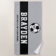 Personalised Grey and Black Soccer Player Name Beach Towel