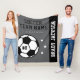 Personalised Grey and Black Soccer Player Name Fleece Blanket