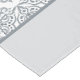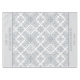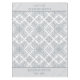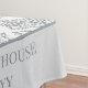 Personalised tablecloth with trendy tile print in neutral shades of grey and white. The design features an abstract pattern of blended Mediterranean tiles and a two tone grey border. The template is set up for you to add your custom text (such as your family name, business name or property address and date established). Please browse my store for matching home decor.