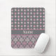 This elegant and girly mousepad features a grey and pink fleur de lis and damask pattern and the name or text of your choice.