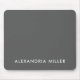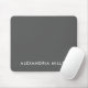 Stay stylish and organised with this personalised grey minimalist monogram mouse pad featuring your name in simple and elegant white font. The solid background provides a modern and clean look that will elevate any workspace. Perfect for home or office use, this mouse pad is sure to impress.