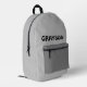 Outfit any occasion with a personalised backpack featuring your name in sleek black font! This durable bag comes in a stylish grey, easily transitioning from day-to-day life to weekend adventures.