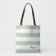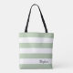 Personalised Greyed Jade and White Striped Tote Bag