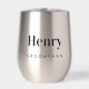 Unique personalised thermal tumbler gift for your groomsmen featuring their name in a large bold font and "Groomsman" in simple typography.
