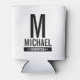 This design features personalised groomsman's monogram, name and title in black modern bold sans serif font style on white background.