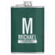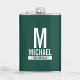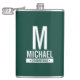 This design features personalised groomsman's monogram, name and title in white modern bold sans serif font style on emerald green background.