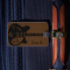 Black image of an acoustic guitar with custom name on it, on red... for your next concert tour
