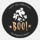 This Halloween round sticker template features a ghost ornament and "Boo" lettering. You can easily personalise these stickers with your name or a custom message.