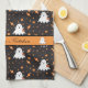 Personalised Halloween Ghost Pattern Black Tea Towel
