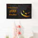Personalised Halloween party banner. Features a scary bat creature or monster and jack-o-lantern face. Colours are orange, red, and black.