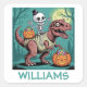 Personalised Halloween Skeleton Riding Dinosaur Square Sticker
