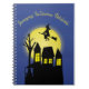 Get ready for spooky season with this personalised Halloween notebook featuring a whimsical witch flying across a glowing full moon above a haunted house silhouette. The bold nighttime scene with glowing windows, bare trees, and a broom-riding witch creates a fun and festive Halloween design perfect for kids, students, and Halloween lovers.