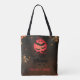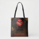 This eerie personalised Halloween tote bag features a spooky scarecrow, bats, and a dark, haunted atmosphere. Customise with a name to make it a special gift for Halloween. Perfect for carrying treats or as a creepy addition to your holiday accessories. Ideal for anyone who loves spooky Halloween designs!