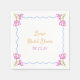 Brighten up your bridal shower with these whimsical hand-drawn floral napkins, featuring a charming mix of pink flowers, delicate blue squiggle borders, and elegant script. This playful yet elegant design adds a touch of vintage romance and artistic charm, perfect for garden parties, boho bridal showers, or colourful tea parties. Personalise with the bride’s name and event details to create a stylish, customised touch for your celebration.
