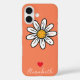 Carry a little happiness in your hand with this adorable personalised phone case. It features a charming hand-drawn daisy and a cute heart, with space for your custom name. The playful design on a trendy coral background makes it the perfect accessory for anyone who loves a unique and stylish look.