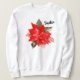You can't help but feel festive wearing this colourful Christmas sweatshirt featuring a vibrant Poinsettia blossom, and personalised with your name. Perfect for the entire Holiday season. Also makes a wonderful gift!