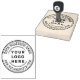 Personalise this Custom Promotional Product wooden round return address rubber stamp with your custom business logo, perfect for rustic jar labels, small business stationery, crafts, etsy shop supplies, farmhouse, homemade wrapping paper, delicious office gifts, scrapbooking. Create your own unique stamp with this vintage distressed round design, upload your own logo, clipart, image or photo. Easily make different rubber stamps for any type of your homemade product.