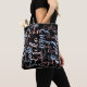 Add your own name to the template to create a seamless typography pattern design. A collage of names of different pink and blue handwritten font styles on a cool black tote