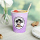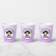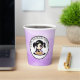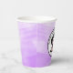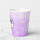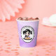 Happy Birthday paper cups with purple and black anime girl eating pizza.