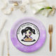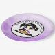 Happy Birthday paper plates with purple and black anime girl eating pizza.