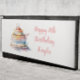 Pretty whimsical Birthday cake personalised banner for a birthday party. Add child's name and age in the personalise area.