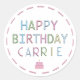 Personalised Happy Birthday Colourful Letters Cake Classic Round Sticker