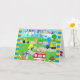 This cute hand drawn card, features a little boy and girl riding in a car with a general boy's theme of tools, tractors, trucks and cars.