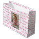 Pink and white Happy Birthday bag personalised with your daughter's photo.