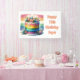 Cute personalised banner for a birthday, Add name and age in the personalise area. Graphics of a yummy rainbow cake.