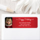 Personalised Happy Holidays red and white return address labels with customisable text and photo