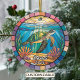 A Personalised Travel Souvenir Ornament designed to celebrate your unforgettable trip to Mexico. Whether you went for work, enjoyed a romantic getaway, or took part in a school exchange program, this ornament commemorates a special moment you’ll always cherish and want to remember for years to come. This ornament features a stained-glass-style design of a turtle swimming in the ocean, creating a truly eye-catching piece.