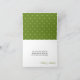 Crisscross shamrock and hearts pattern in green and white makes a pretty St Patrick's Day or Irish themed March wedding thank you card. It can be personalised with the names of the bride and groom on the front of the card. A pretty green and white polka heart pattern on the inside top of the card. Artwork on this custom shamrock wedding or bridal shower shower thank you note is © Chrissy H. Studios, LLC. All Rights Reserved.