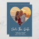 Create Your Own Simple, Blue and White, Heart Cutout For Photo, Wedding Save the Date. Add Your Own Photo, Add Your Names, Add Your Wedding Date, Add Your Wedding Location and Make It Your Own.