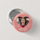 Personalised cute blush pink Heart Photo Memorial button, a simple and modern design featuring elegant customisable calligraphic script text, sans-serif oldstyle distressed font, custom name, date and photos. "Forever in our hearts" can be edited with a personalised sympathy quote. Avaiable in small, medium, large and huge sizes, in squared and round shapes. No minimum order. The Memorial Button Background is a deep red, you can change it in any colour.