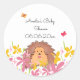 Personalised Harriet the hedgehog favour round sticker. This cute woodland critter is great choice for a girls baby shower or birthday party .