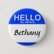 Sometimes that Hello My Name Is sticker is just not going to cut it, and you need a more permanent option. Well here is your very own Hello My Name Is round button pin in blue. One of the most recognisable name tags you have seen, customisable to your name. The eco-friendly option for social gatherings and meeting new people, because who can resist this classic tag.