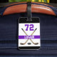 Personalised Hockey Player Name Number purple hockey bag tag.