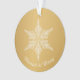 Married & Merry - Mr. & Mrs. Wedding Photo Holiday Ornament -- Add your own favourite family, kids, or pet picture on the back to create a unique personalised keepsake memento to hang on your tree for years to come, or send as gift to friends or loved ones far away. Can also be used to create fun and memorable gift tags for the special people on your list ... mum, dad, grandparents, sisters and brothers, etc. Reverse Side -- Elegant vintage white filigree snowflake on classy gold background with optional custom curved text.