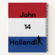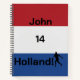 Capture your thoughts, tactics, or game notes in this vibrant notebook featuring the iconic red, white, and blue stripes of the Holland flag. The cover showcases a sleek soccer player silhouette and bold, athletic typography that is fully customisable with your name and jersey number. Durable and stylish, this spiral notebook is the perfect companion for students, coaches, or any dedicated supporter looking to bring a touch of Dutch football spirit to their writing.