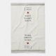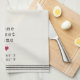 A cute personalised kitchen towel featuring vintage typewriter lettering, rope stripe detailing, and a heart illustration. "Home Sweet Home" or your choice of custom text appears along with your home's latitude and longitude coordinates.