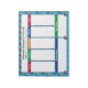 Modern colourful PERSONALIZED HOMEWORK TO DO LIST Tear Away Notepad, showing background pattern of books. Main days are Monday to Friday, with shared Saturday/Sunday and section marked DON'T FORGET. All text is CUSTOMIZABLE including the headings, so you can personalise as you see fit and change the column headings. The main colours are red, green, orange and blue against a CYAN BLUE background. This would make a great gift for Back To School, and can be customised to use as a Personalised Weekly Planner for teachers and family homes. Matching items available. Also comes in yellow, white and pink.
