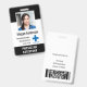 Personalise these vertical medical personnel badges with an employee photo and name, along with multiple custom text fields for hospital or healthcare facility name, unit or floor, title abbreviation, employee ID number, or valid through date, along with the medical centre logo. The title or role appears along the bottom in bold white lettering for easy identification. Customise with a barcode on the back if needed, along with return information or other details.
