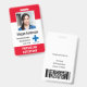 Personalise these vertical medical personnel badges with an employee photo and name, along with multiple custom text fields for hospital or healthcare facility name, unit or floor, title abbreviation, employee ID number, or valid through date, along with the medical centre logo. The title or role appears along the bottom in bold white lettering for easy identification. Customise with a barcode on the back if needed, along with return information or other details.
