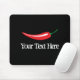 Personalised hot red chilli pepper mouse pad. Spicy food design with vintage typography template. Add your own name, monogram or funny quote / saying. Cute gift idea for southwest men women and teen kids. Black or custom colour background.