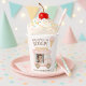 Celebrate your little one's special day with this adorable personalised paper cup featuring a watercolor pink ice cream truck and your child's photo! The design includes the phrase "Here Comes the Scoop!" along with sweet pastel sprinkles and a soft pink cone, making it a charming match for your ice cream-themed birthday party. Customise the name, age, and photo to make it truly unique. Perfect for serving drinks or displaying as part of your dessert table setup.