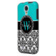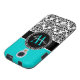 Personalised Initial Aqua Teal Black Damask Case-Mate Samsung Galaxy Case