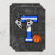 Fun Basketball design for the young ice basketball player or basketball fan. Feature the letter T in blue and white team colours with Basketball high tops and basketball. Background features chalkboard design basketball terms and images
